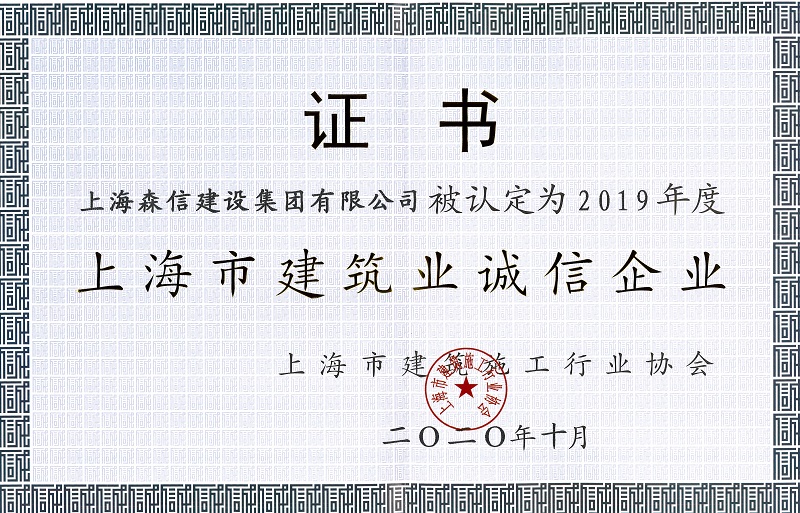 近日,我司再獲“上海市建筑業(yè)誠(chéng)信企業(yè)”認(rèn)定。