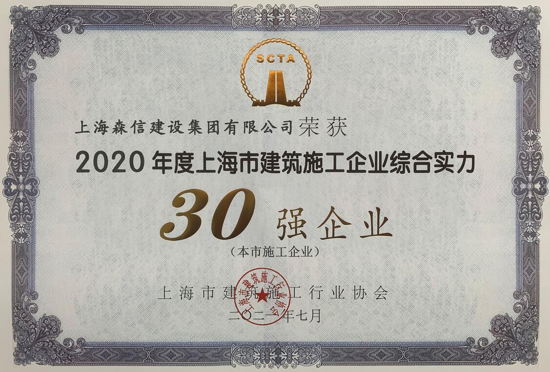 近日,2020年度上海市建筑施工企業(yè)綜合實(shí)力數(shù)據(jù)統(tǒng)計(jì)公布,上海森信建設(shè)集團(tuán)再度榮獲上海市建筑施工企業(yè)綜合實(shí)力30強(qiáng)企業(yè)。本次的市建筑企業(yè)綜合實(shí)力數(shù)據(jù)統(tǒng)計(jì)是由上海建筑施工行業(yè)協(xié)會按照統(tǒng)計(jì)工作的指標(biāo)體系及標(biāo)準(zhǔn),嚴(yán)格對申報(bào)企業(yè)2020年度的建安產(chǎn)值、完稅總和和企業(yè)管理數(shù)據(jù)進(jìn)行統(tǒng)計(jì)分析,最終評選出前30位的企業(yè)。