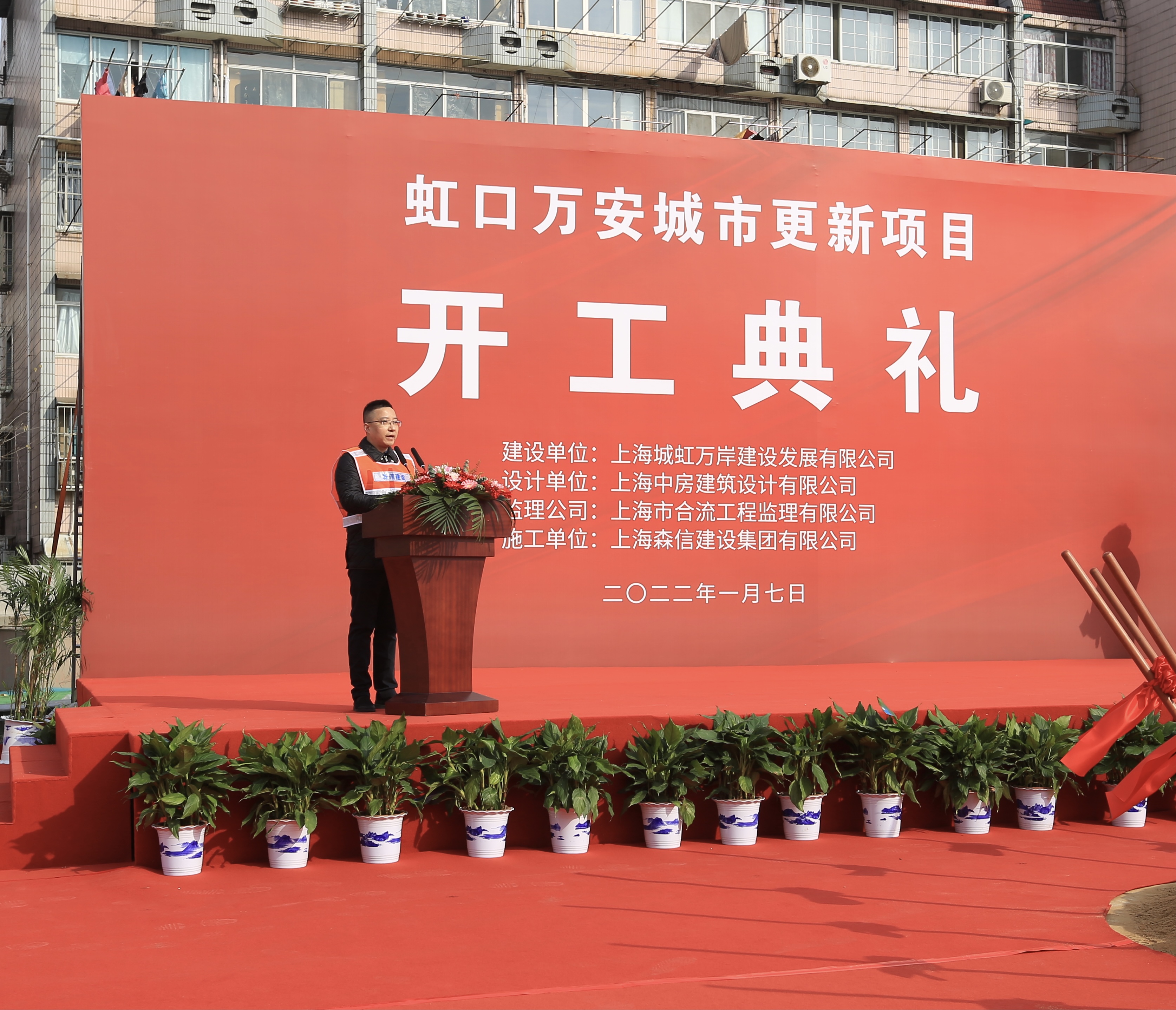 虹口區(qū)工商聯(lián)主席、森信建設(shè)集團董事長王文其出席開工典禮,森信建設(shè)集團總經(jīng)理王海軍代表公司作表態(tài)發(fā)言。