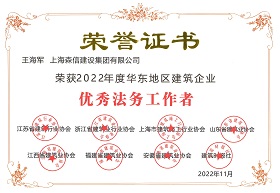 王海軍總經(jīng)理獲評“優(yōu)秀法務(wù)工作者”、森信建設(shè)獲評“優(yōu)秀法務(wù)工作團(tuán)隊(duì)”