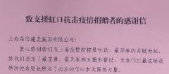 4月20日,公司收到來自虹口區(qū)委、區(qū)政府的感謝信,感謝公司在疫情防控期間的社會擔(dān)當(dāng)與責(zé)任奉獻(xiàn)。 3月以···