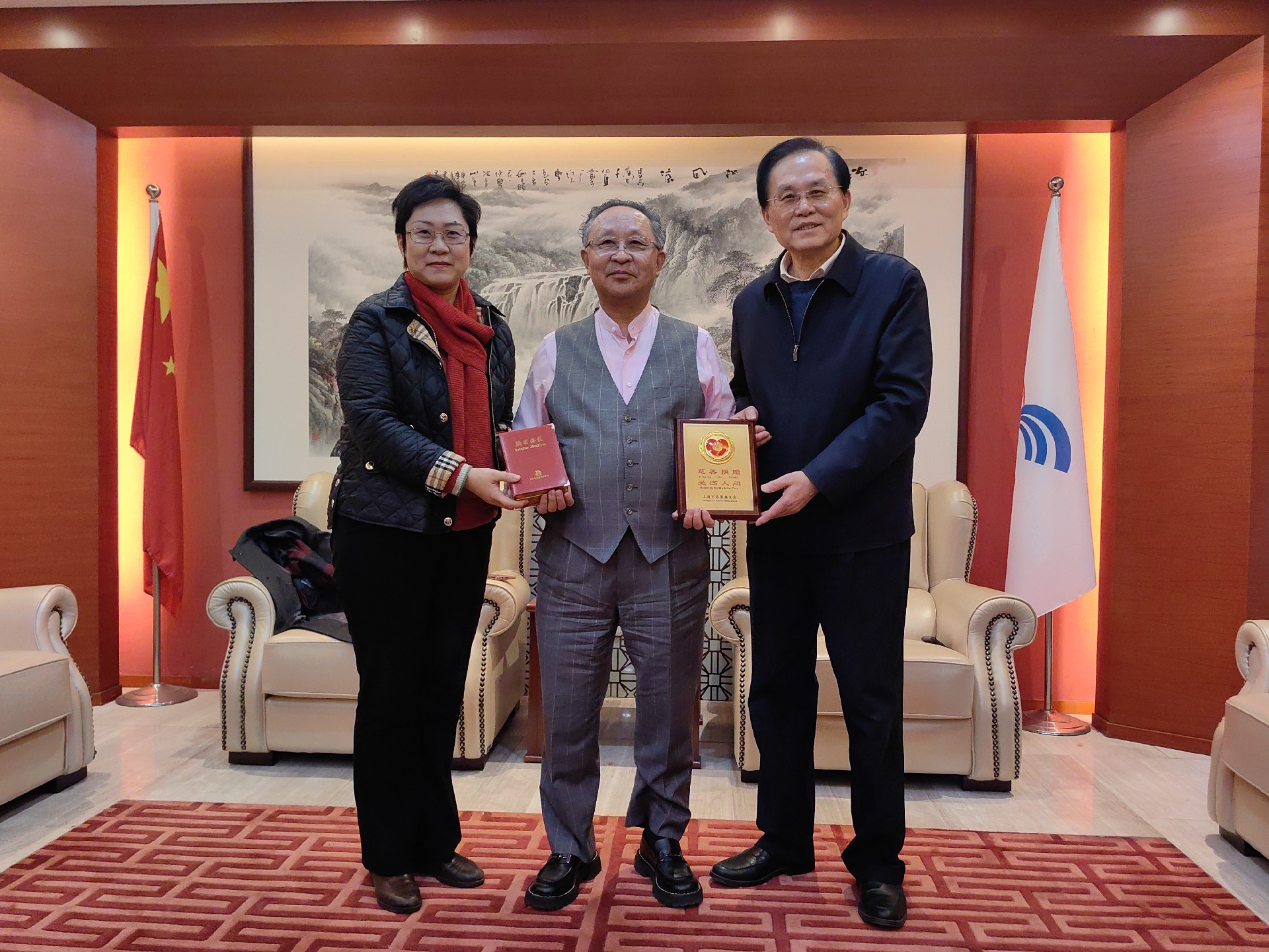 管會長一行對森信集團(tuán)長期給予上海慈善事業(yè)的關(guān)注與支持表示衷心感謝,對森信集團(tuán)的發(fā)展及勇于承擔(dān)社會責(zé)任、多年來積極參與社會公益事業(yè)、扶貧濟(jì)困、鄉(xiāng)村振興、捐資助學(xué)、關(guān)愛社會弱勢群體給予肯定與贊揚(yáng),并向董事長贈送了根據(jù)畫家張東麟、吳介平的油畫《海派文化發(fā)祥地》創(chuàng)作的真絲織錦--虹口百景圖。